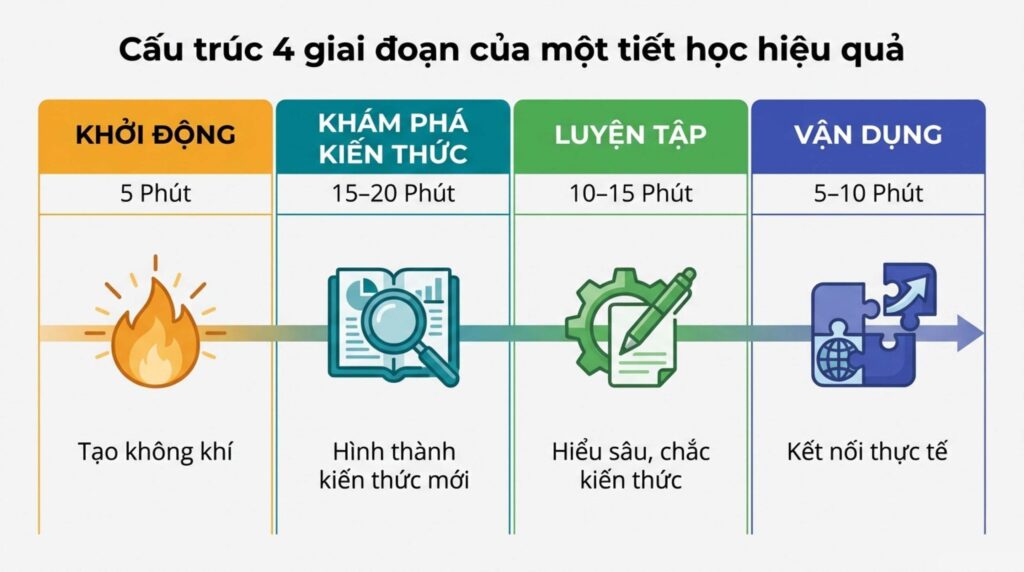 Một tiết học thường được chia thành 4 phần rõ ràng: