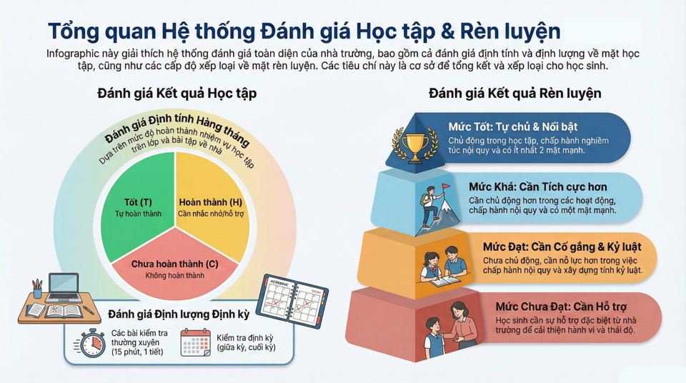 Cách đánh giá này giúp học sinh không bị áp lực nặng nề, đồng thời cha mẹ cũng dễ theo dõi sự tiến bộ của con em mình.