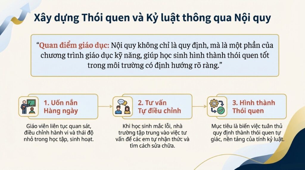 Trong hành trình trưởng thành, việc mắc lỗi là điều khó tránh khỏi. Điều quan trọng là các em học được cách đối diện và chịu trách nhiệm. Quy trình xử lý vi phạm của nhà trường được xây dựng dựa trên sự thấu hiểu: