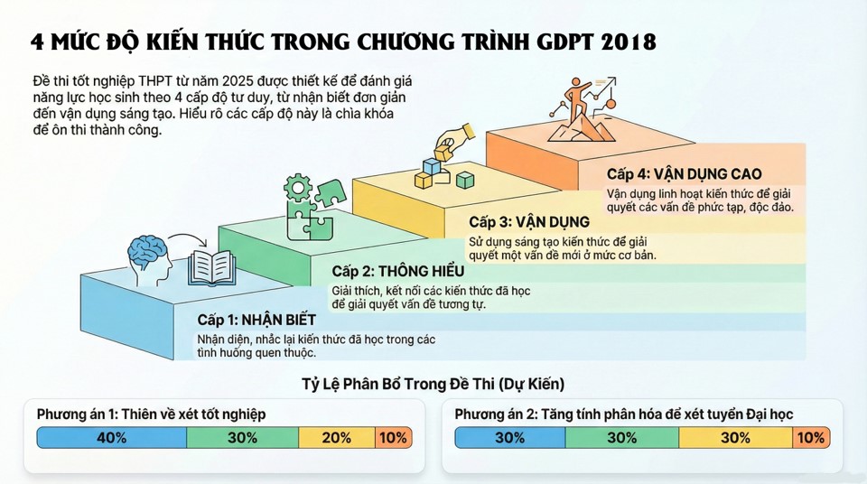 Bên cạnh đó, hệ thống bài tập được thiết kế đi từ dễ đến khó. Các em sẽ bắt đầu từ việc Nhận biết để chắc gốc, sau đó tiến đến Hiểu và cuối cùng là Vận dụng vào thực tế. Cách phân bổ này giúp các em không chỉ học vẹt để đi thi, mà thực sự làm chủ được kiến thức để giải quyết các vấn đề đa dạng.